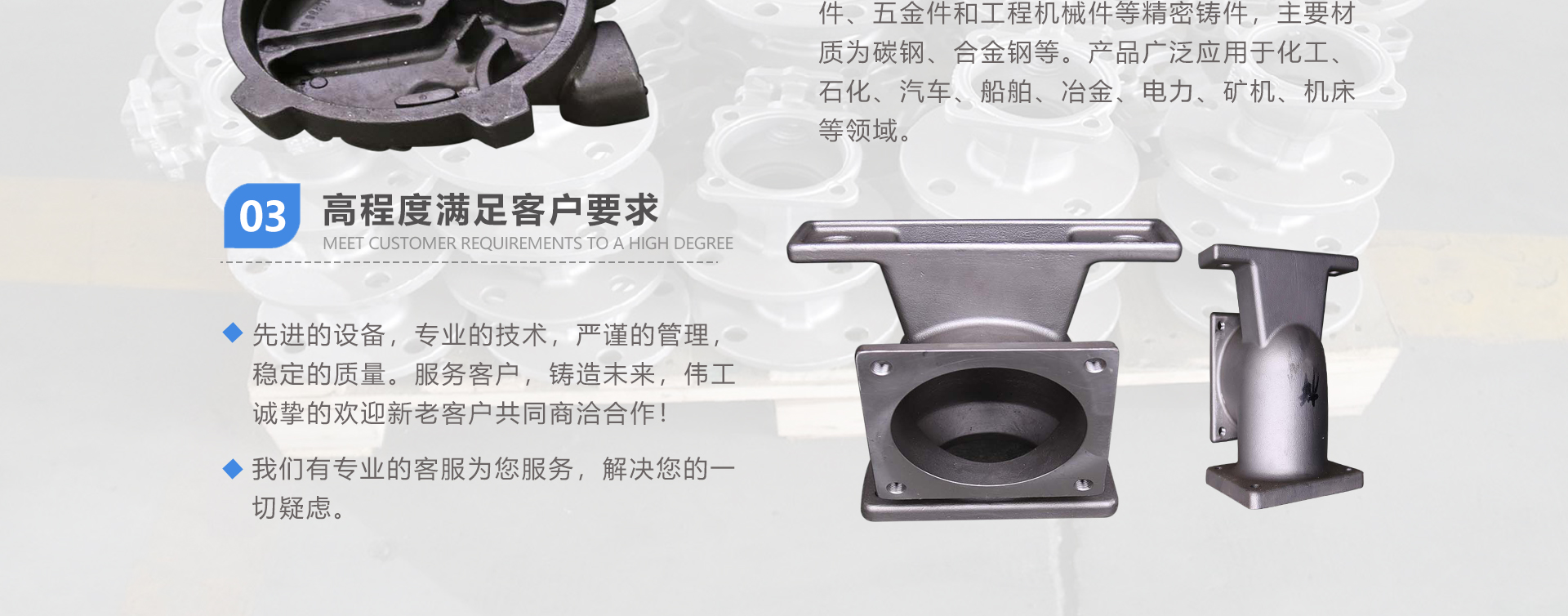 安徽偉工機(jī)械科技有限公司,坐落于安徽蕪湖新蕪經(jīng)濟(jì)開(kāi)發(fā)區(qū),是一家専業(yè)從事鑄造產(chǎn)品設(shè)計(jì)、研發(fā)、生產(chǎn)、銷(xiāo)售于一體的企業(yè),公司為客戶(hù)的產(chǎn)品提供多樣的技術(shù)支持與設(shè)計(jì),公司主要鑄造技術(shù)有潮模砂鑄造、硅溶膠精鑄工藝。主要產(chǎn)品有:不銹鋼閥門(mén)配件、泵閥配件、汽車(chē)配件、工業(yè)管道配件、工程機(jī)械配件、汽車(chē)配件等。材質(zhì)為:低合金鋼、304、316、316L、鉻鉬鋼、哈氏合金、碳鋼、雙相鋼等。公司已先后通過(guò)ISO9001和TS16949等多種體系審核,以完備的管理手段和齊全的檢測(cè)設(shè)備滿足客戶(hù)需求,進(jìn)的設(shè)備,専業(yè)的技術(shù),嚴(yán)謹(jǐn)?shù)墓芾?,穩(wěn)定的質(zhì)量。服務(wù)客戶(hù),鑄造未來(lái),偉工誠(chéng)摯的歡迎新老客戶(hù)共同商洽合作